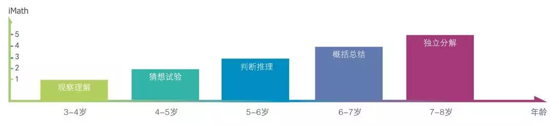 摩比數(shù)學(xué)思維iMath課程以兒童生理發(fā)展特點為依據(jù),按年齡分為5個階段。